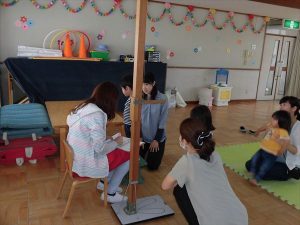 本日体験教室を行いました。今日は、月初めですので身体測定と手遊び絵本の読み聞かせでした。次回は20日(火)です。シャボン玉遊びを予定しております。ご興味、又参加したい方はご連絡ください。