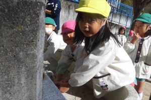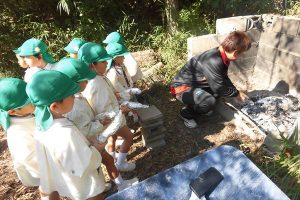 いよいよ焼きに行きます。焼く場所へお芋を持って行って・・・・。焼いているところも興味深々の子ども達。