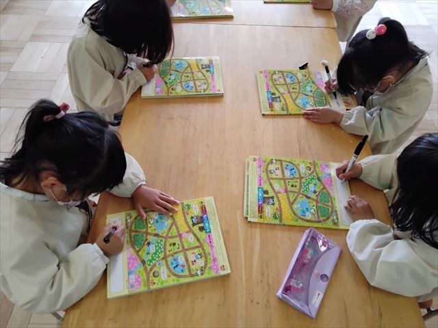 「この模様あげる」「交換しよ」と、お友だちとやり取りしながら楽しく取り組んでいました