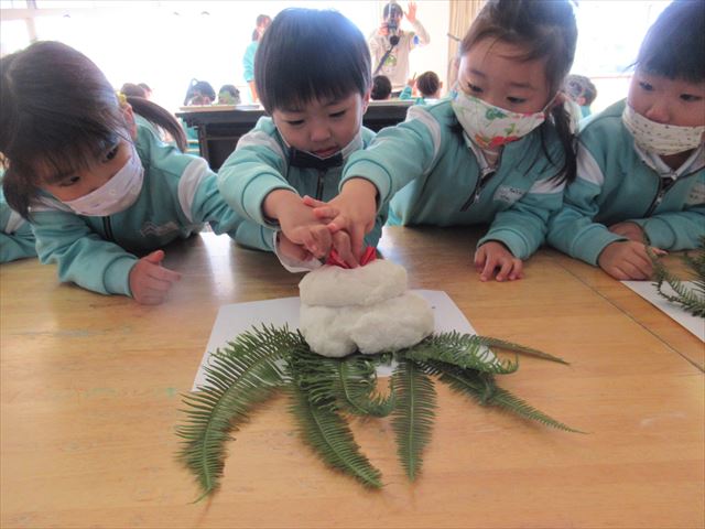 今年は食べる事が難しかったため、お遊戯室で「鏡餅づくり」を行いました