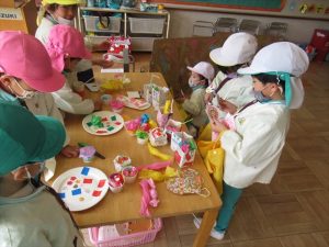 お店屋さんとお客さんに分かれてのお買い物はとっても楽しくてあっという間でした