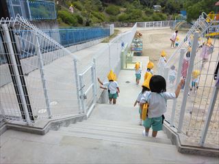 今日は避難訓練を全園児で行いました。先生のお話しをよく聞き避難することができました。避難経路確認、避難するときのお約束なども理解している様子でしたので、次回11月には子どもたちにはお知らせせず行いたいと思います。