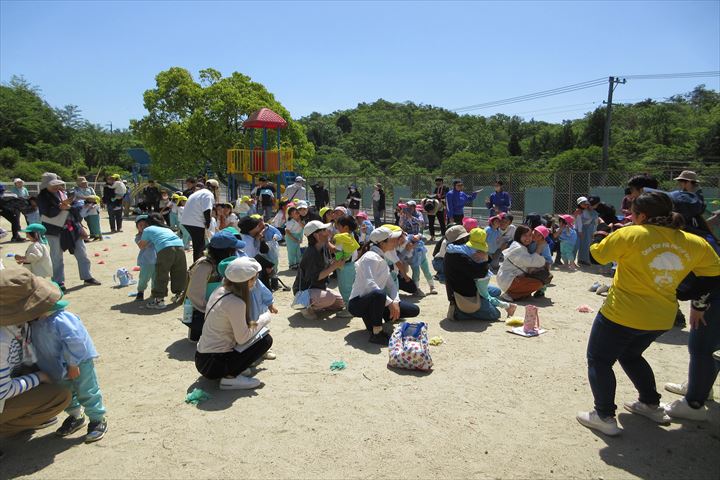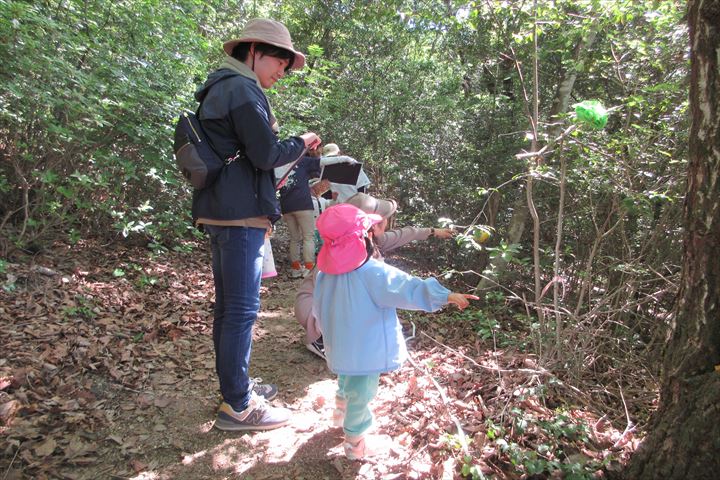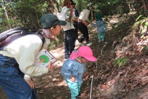 宝探しでは、山の中に普段山にない人工物をおき、探しました