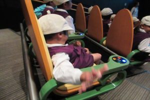 シアタールームでは交通ルールのクイズをしました。問題をよく聞きながら「1番かな・・」「あってた~やった!」と友達と悩んだり、正解した事を喜んでいましたうれしい顔指でOK指でOK