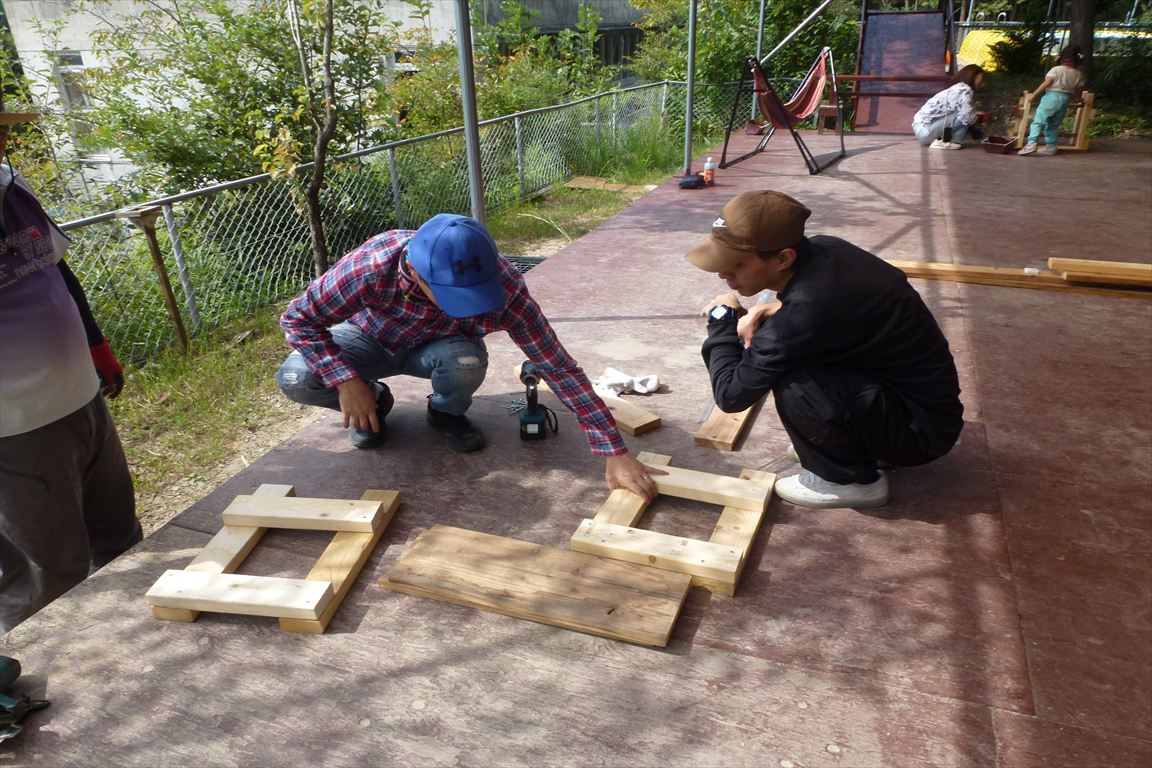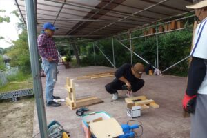 本日は作業日です。デッキのペンキ塗りとピーステーブルの作成を行いました。スムーズに作業が進み、ピーステーブルも2台作成する事が出来