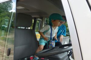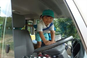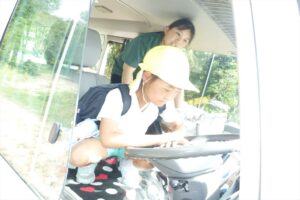この訓練を経験してきている子ども達。一度動作を振り返り、一人ひとりクラクションを鳴らしました。