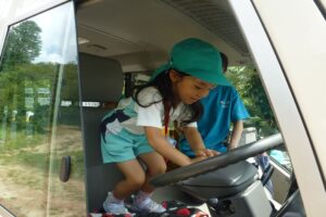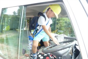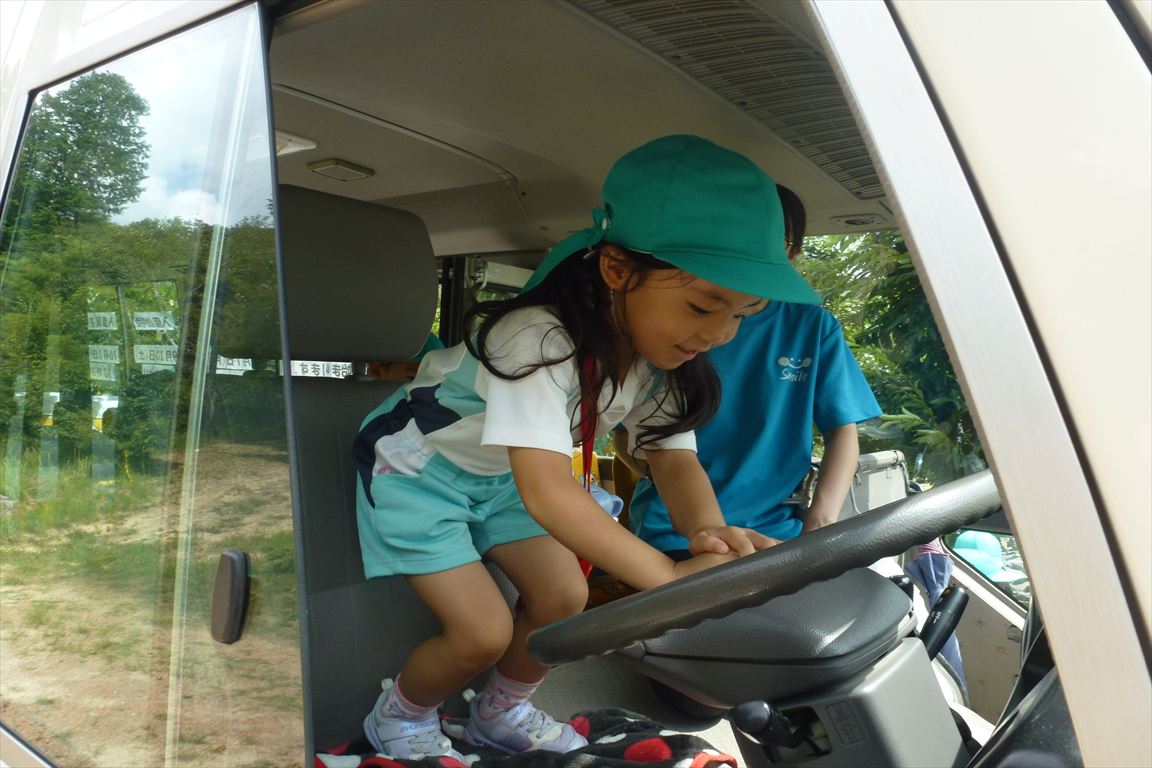 園バスは、置き去りシステムの導入を完了していますが、年中組年長組はスイミングなどで、バスに乗る機会がありますので、万が一閉じ込められた場合を想定し、幼稚園バスクラクション訓練を行いました。