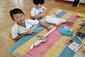 最後には、出来上がった小道具を使って、みんなで劇遊び!楽しかったね