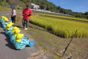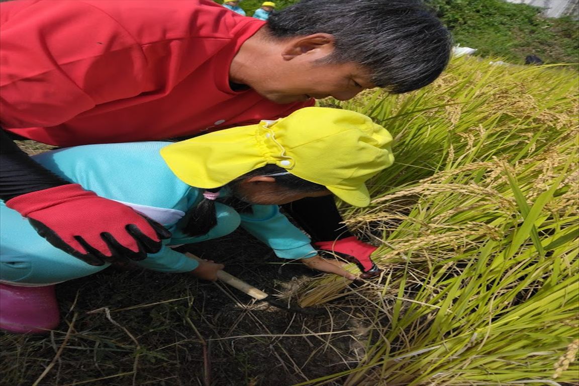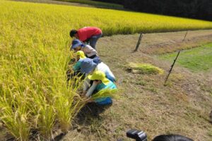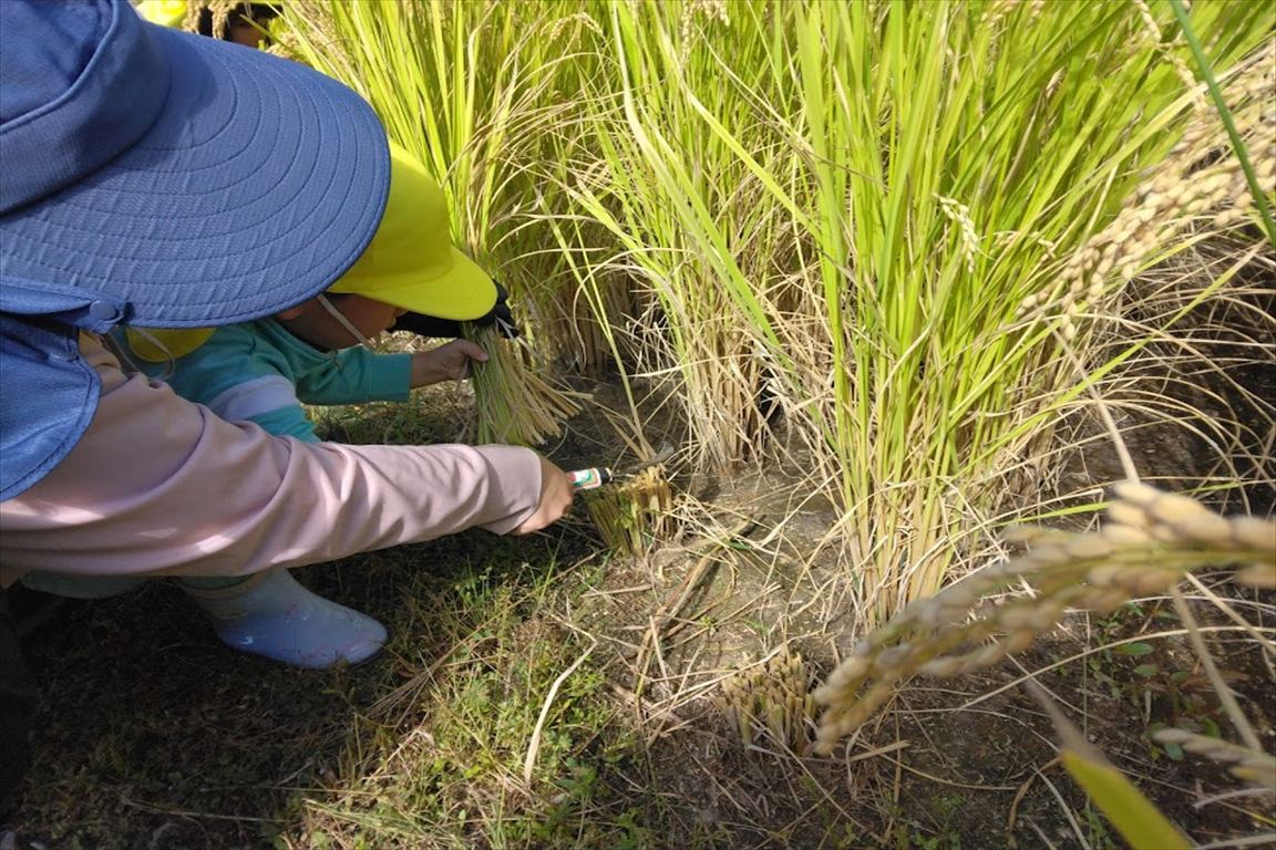 5月に田植えをした苗が大きく育ち、みんなで稲刈りをしてきました