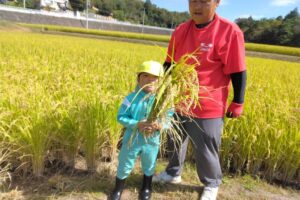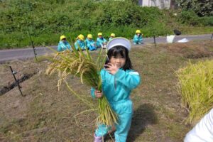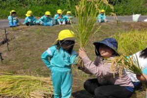 田植えからここまでお米を育てて頂き、貴重な経験をさせて頂いた澤田さんをはじめ、お手伝い頂いた保護者の方に感謝申し上げます。ありがとうございました。