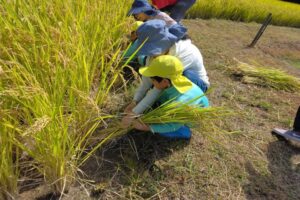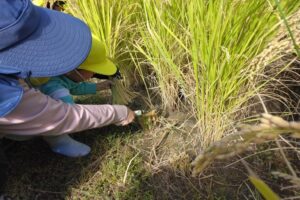 鎌の使い方に苦戦していた子どもたちですが何回か経験するうちにコツをつかみ、最後は自分の力だけで稲を刈ることが出来ました