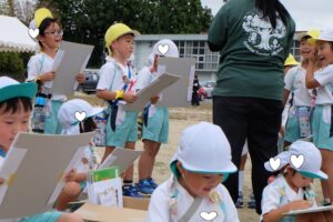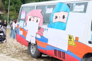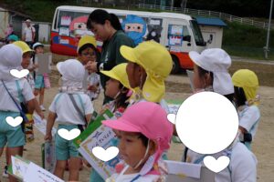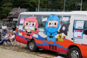 なんとバスの隣から忍者大先生も現れるなど、子どもたちから歓声も上がり、俄然やる気になった子どもたちです。