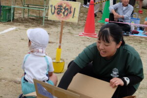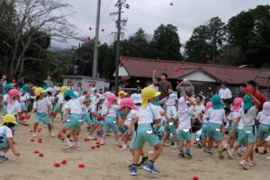 みんなで協力してカゴに向かって玉を入れる事が出来ましたねどちらのチームも沢山玉が入ったね