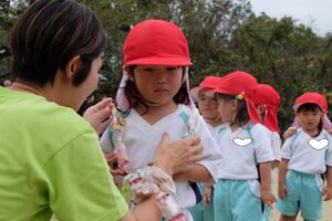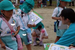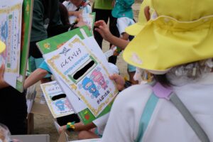 閉会式が終わり、忍者大先生からぴかぴか飯野ひかり忍者の認定書と、手裏剣のブレスレット頂いて子どもたちも大満足