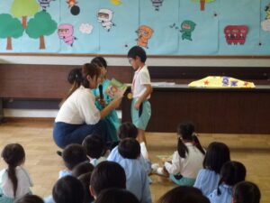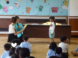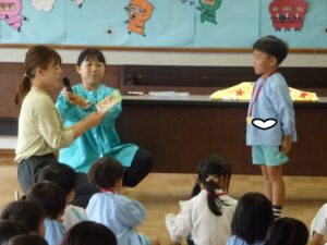 最後はみんなのお楽しみ、えりな先生からプレゼントをしてもらいました