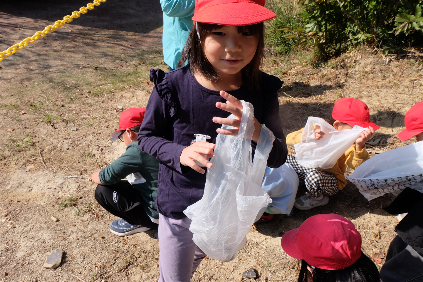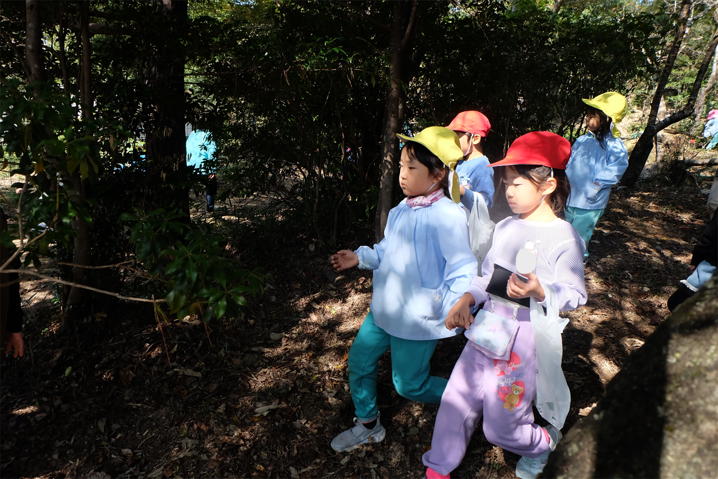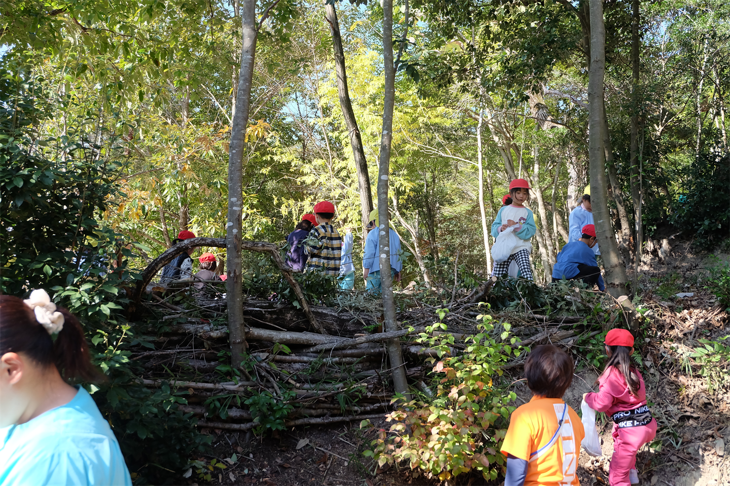 遊具や秘密基地でおままごと、引き続き木の実など自然物を探すなど、様々な時間の使い方で最後まで楽しんでいましたほっとした顔黒ハート