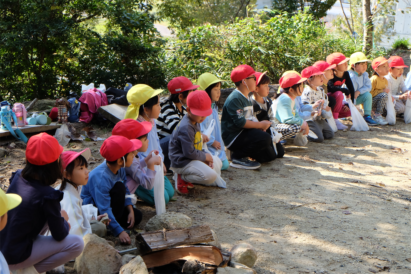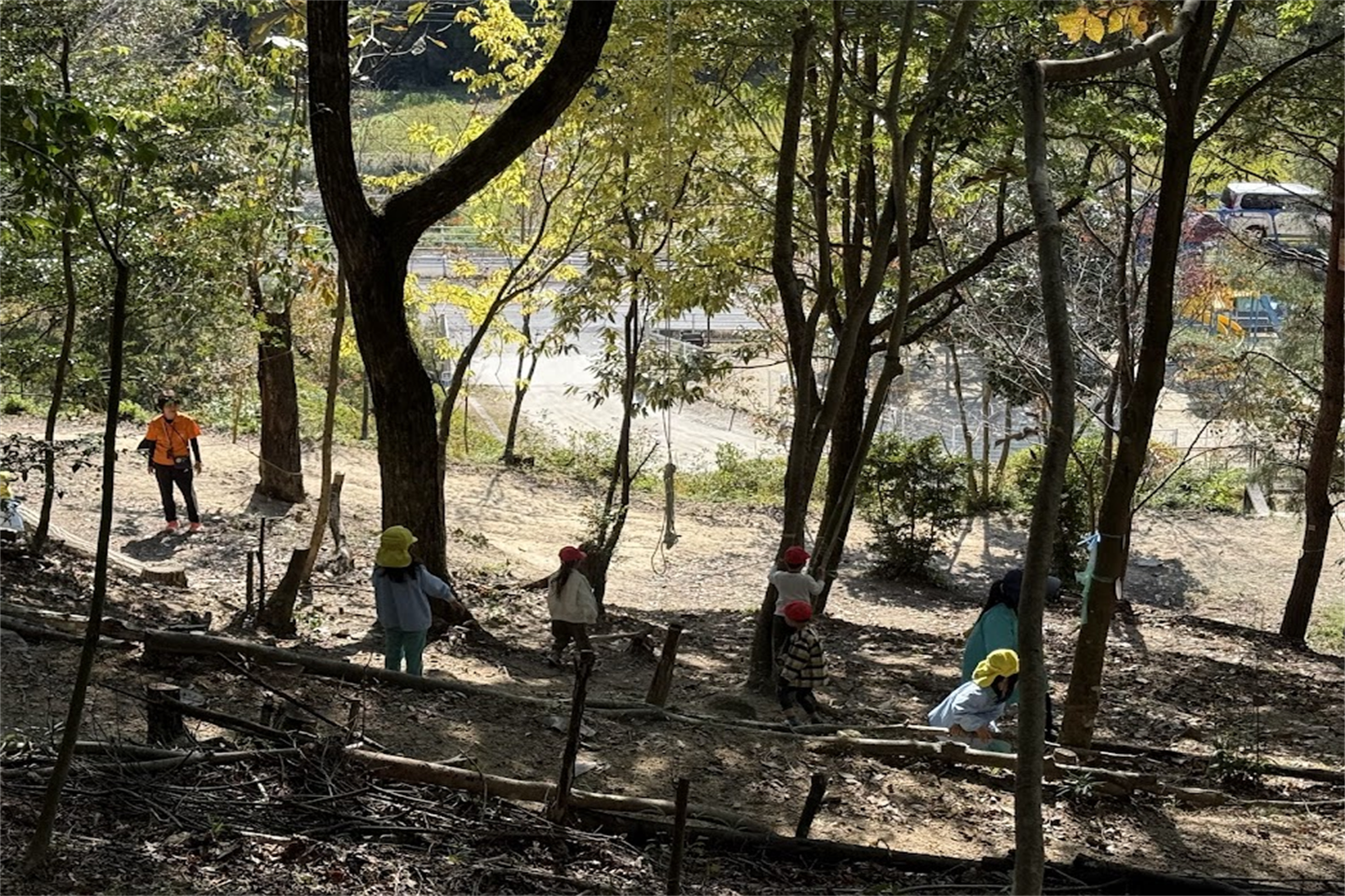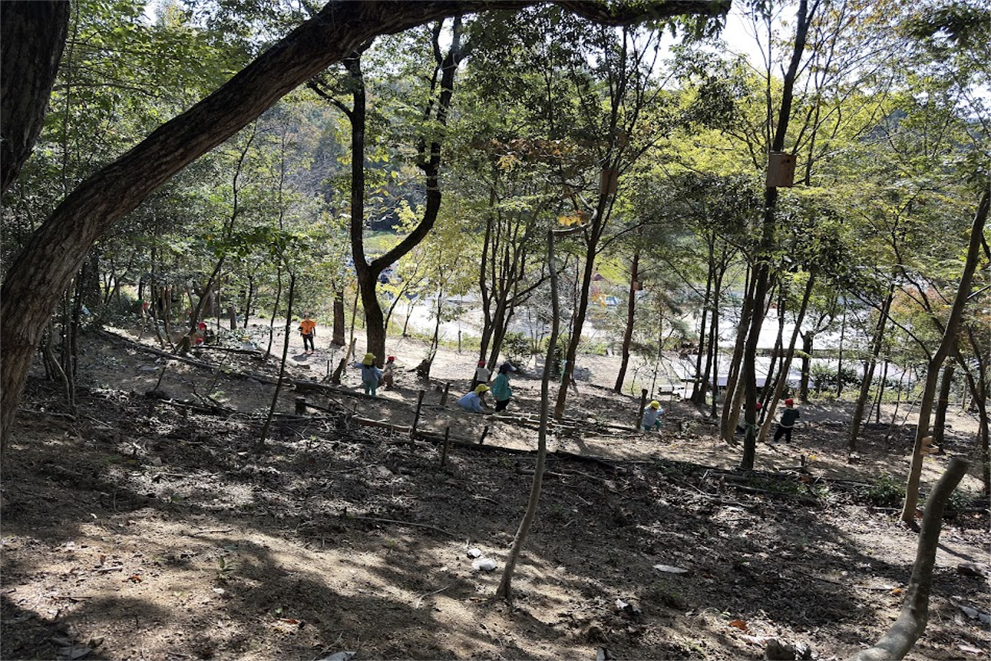 遊具や秘密基地でおままごと、引き続き木の実など自然物を探すなど、様々な時間の使い方で最後まで楽しんでいましたほっとした顔黒ハート