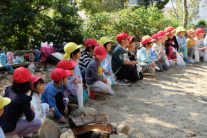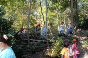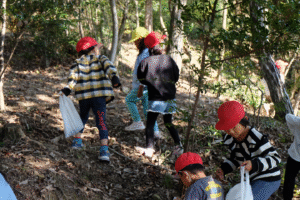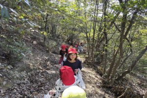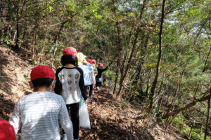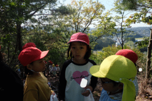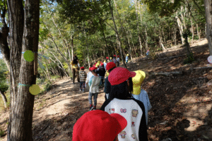 そして、少しお茶のみ休憩をしてから、年長さんが1年生を頂上まで案内しましたハートたち (複数ハート)