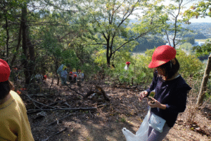 頂上に着くとなんと・・・飯野小学校が見える目がハート (顔)目がハート (顔)子どもたちは声を揃えて「やっほー!」とやまびこに挑戦指でOK小学校まで聞こえたかなexclamation and question