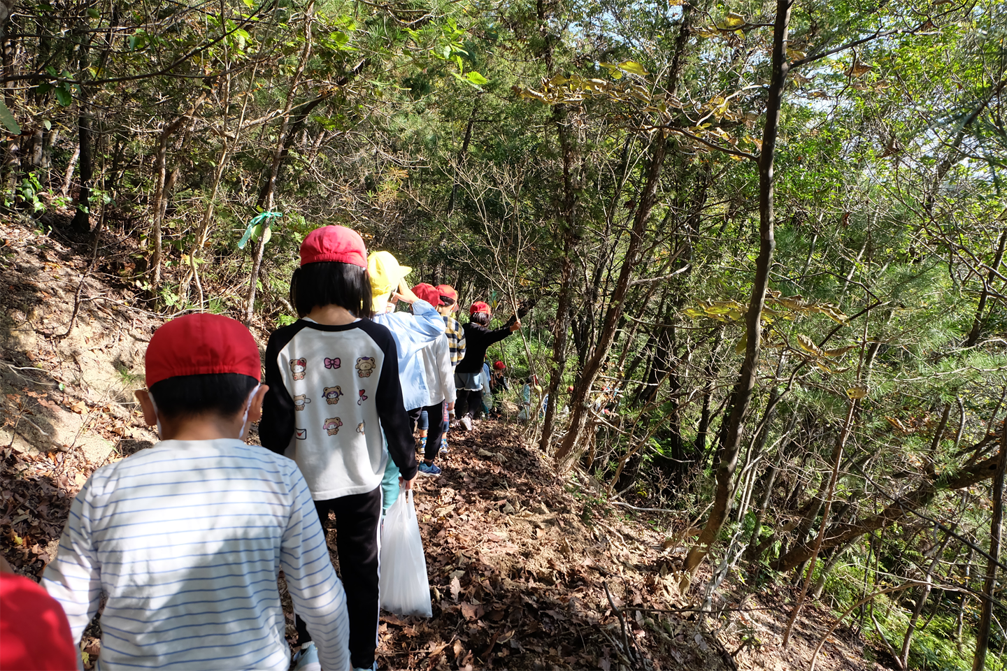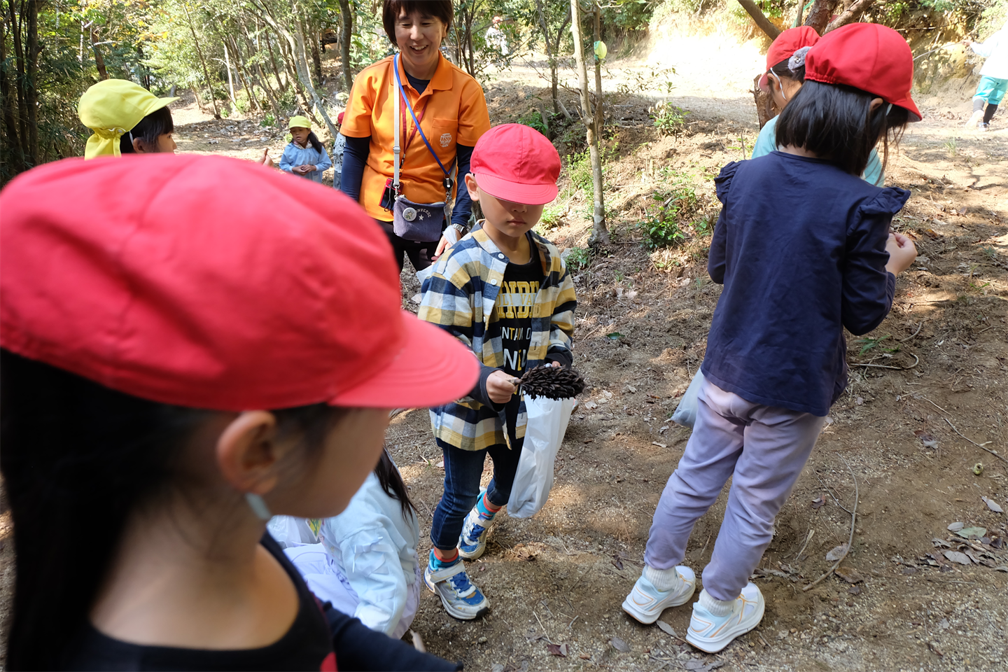頂上に行くまでにも、松ぼっくりやどんぐり、大きい葉っぱ(ほうのは)があり、目がキラキラしている様子でした👀ぴかぴか (新しい)ぴかぴか (新しい)