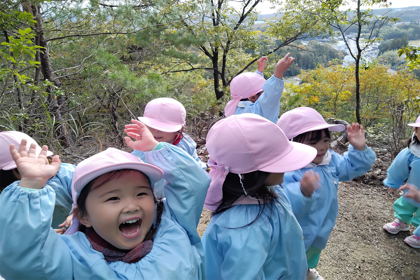 山頂からは街の景色が見え自分の家を探したり、「やっほー!」とみんなで一緒にやまびこをしたりしました!