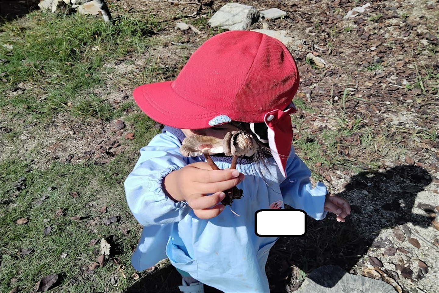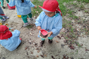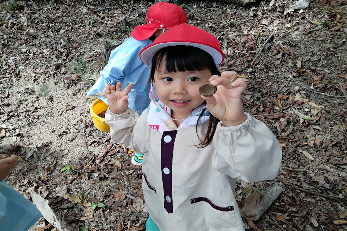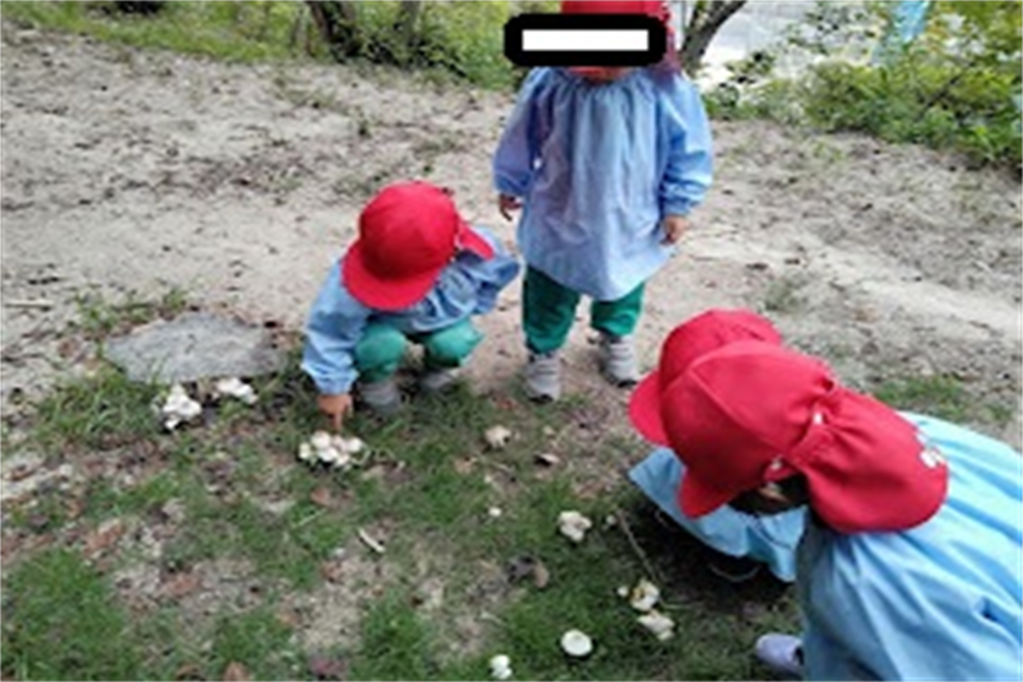 秋探しをするのが大好きな子どもたち。「きのこ見つけたよー!」「葉っぱが赤いね!」など秋を感じていました。