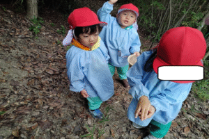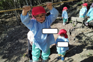 お友達にも「一緒に行こう!」と声をかけてる姿があり、坂も手を取りあって登っている姿もありました!また、お兄さんお姉さんの真似をしてアスレチックで遊んでみたり、一緒に実をとったりする姿も️ウィンク