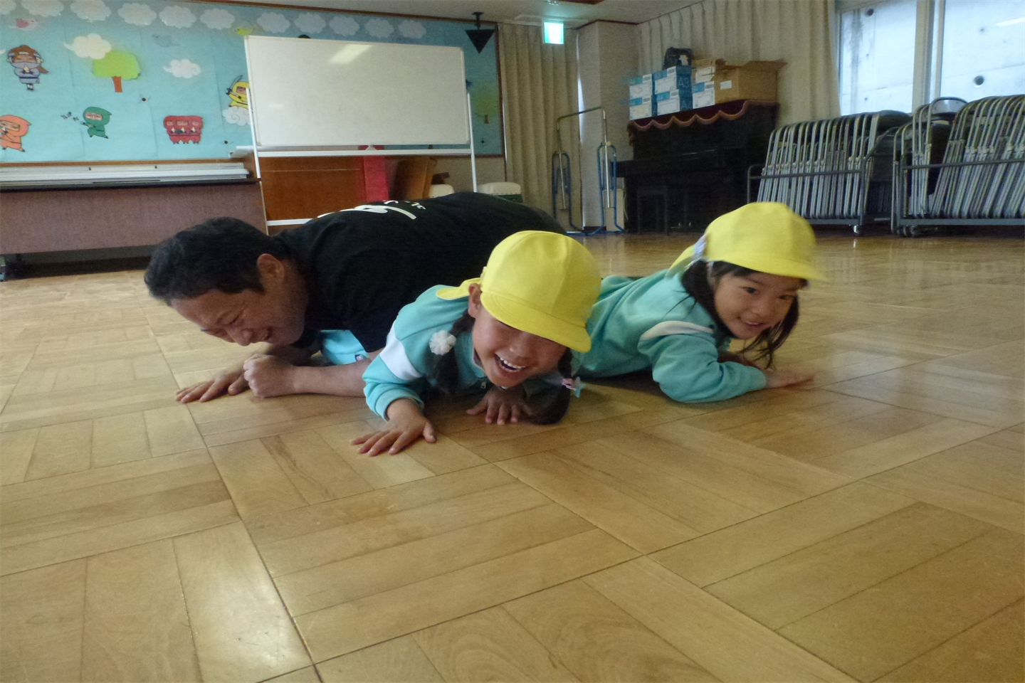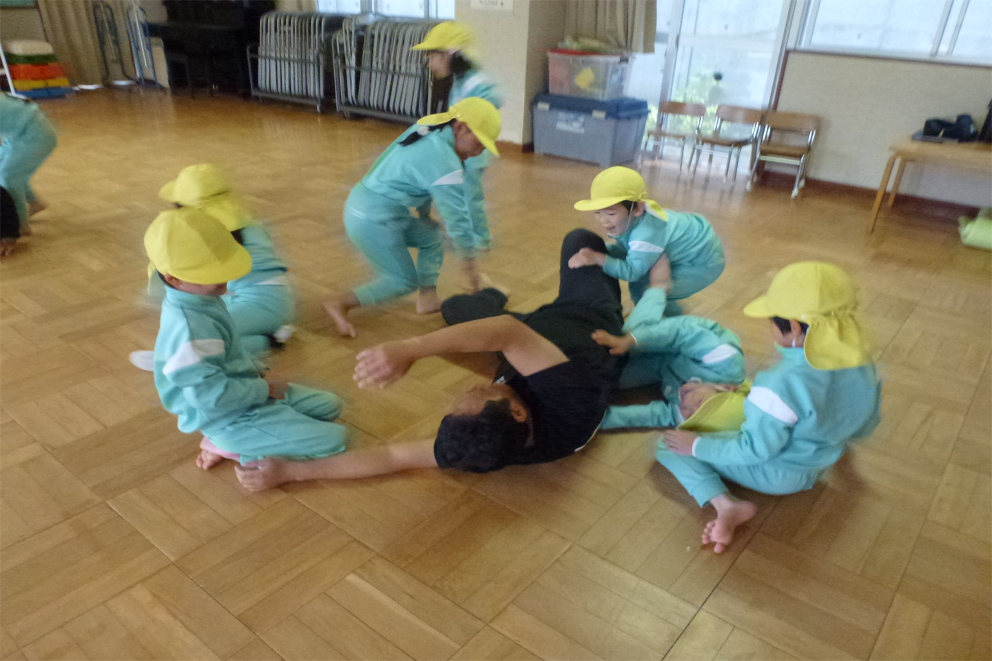 始めは子どもたちがやっていましたが次は先生をひっくり返す側になりましたが、