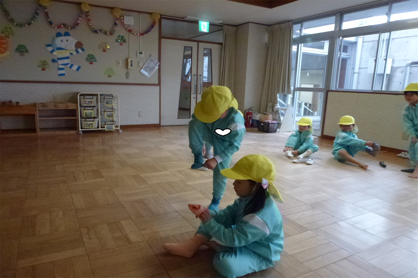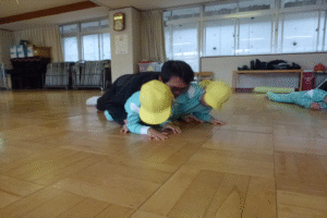 手を繋いだり、頭を引っ付けたりみんなで協力してやることが出来ました!!