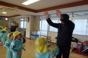 先生が体のどこかを伝えると子どもたちは1秒で触れるか挑戦をしました!