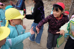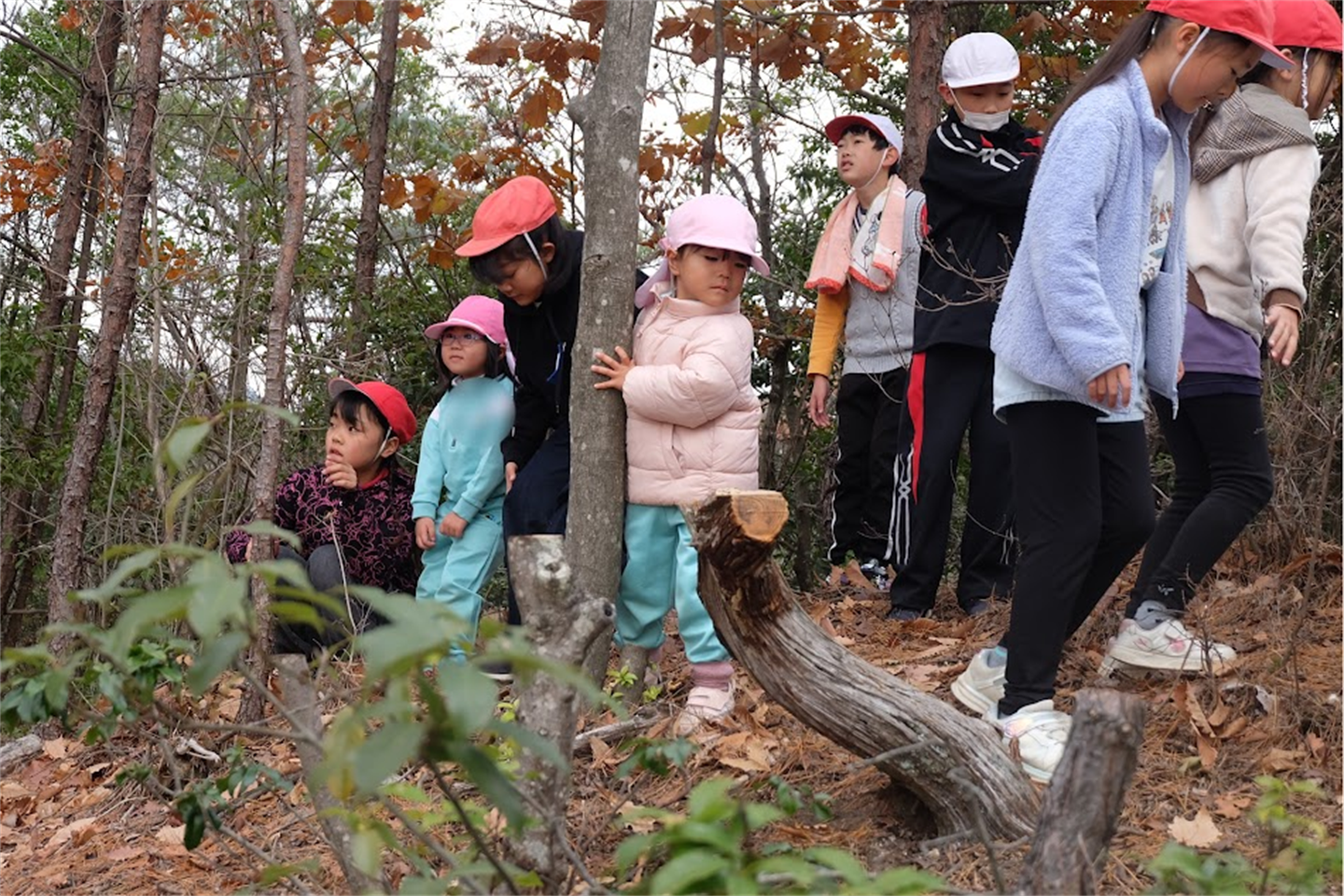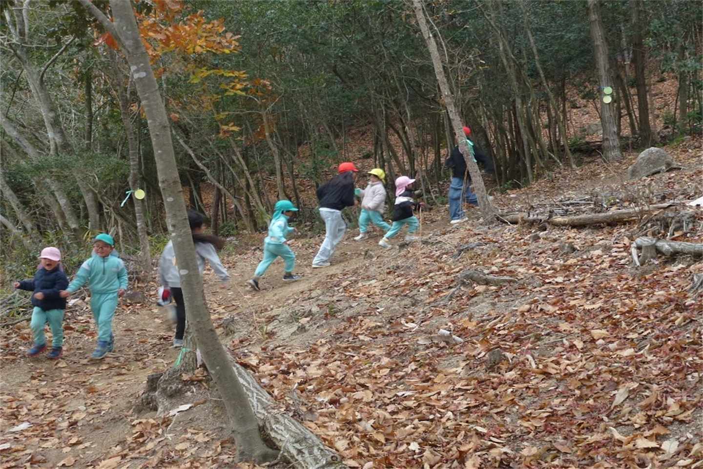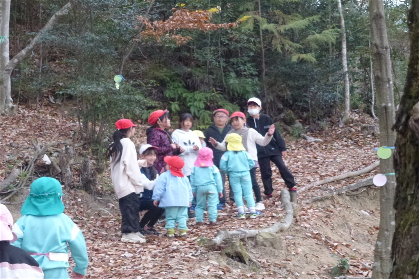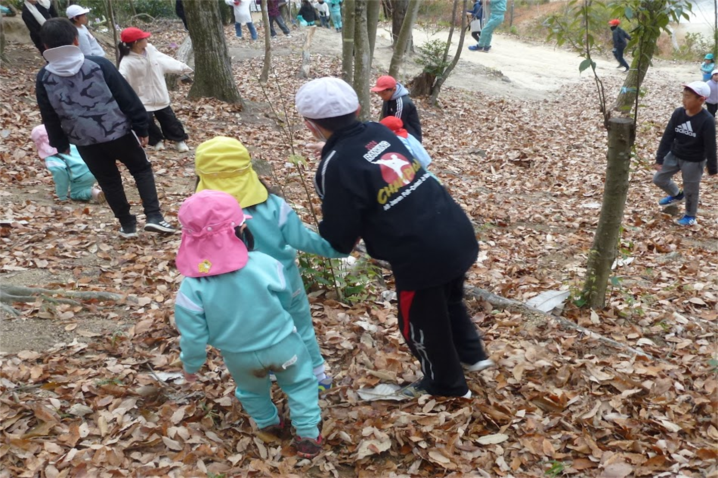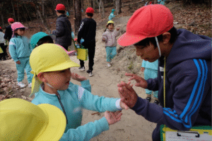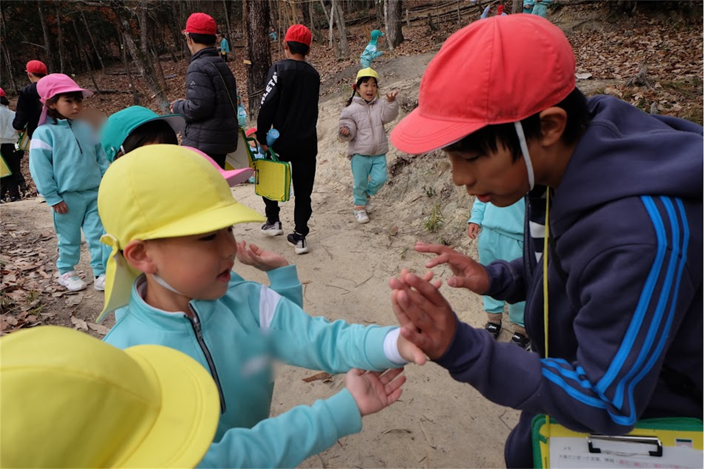 途中からは…な、なんと小学校のお兄さんお姉さんたちも、森林のお勉強をしにぴかぴか山へ!!