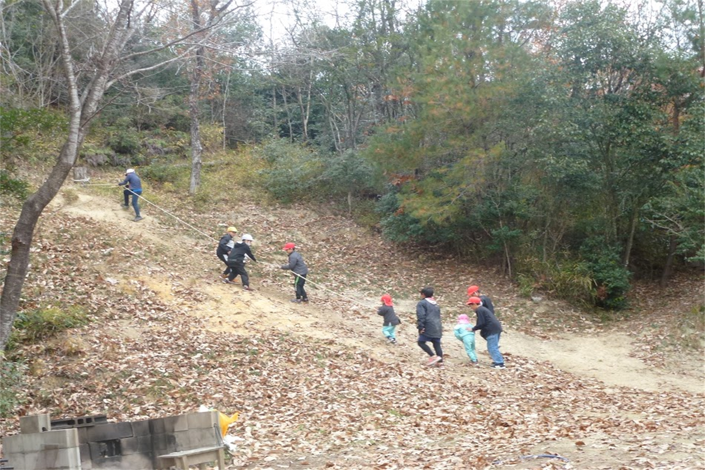みんなで頂上まで行ったり、ままごとを楽しんだり、かけっこを挑む子も