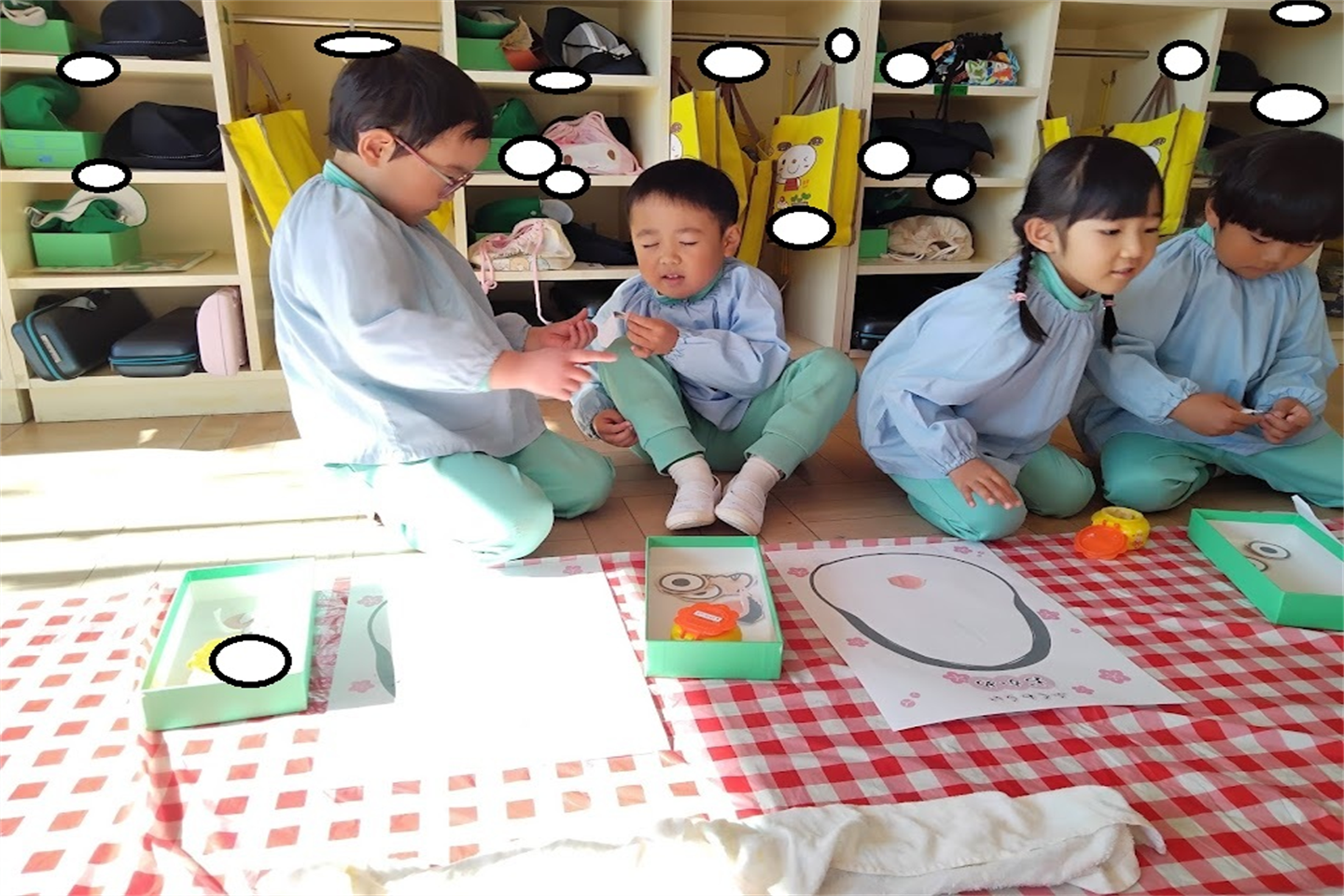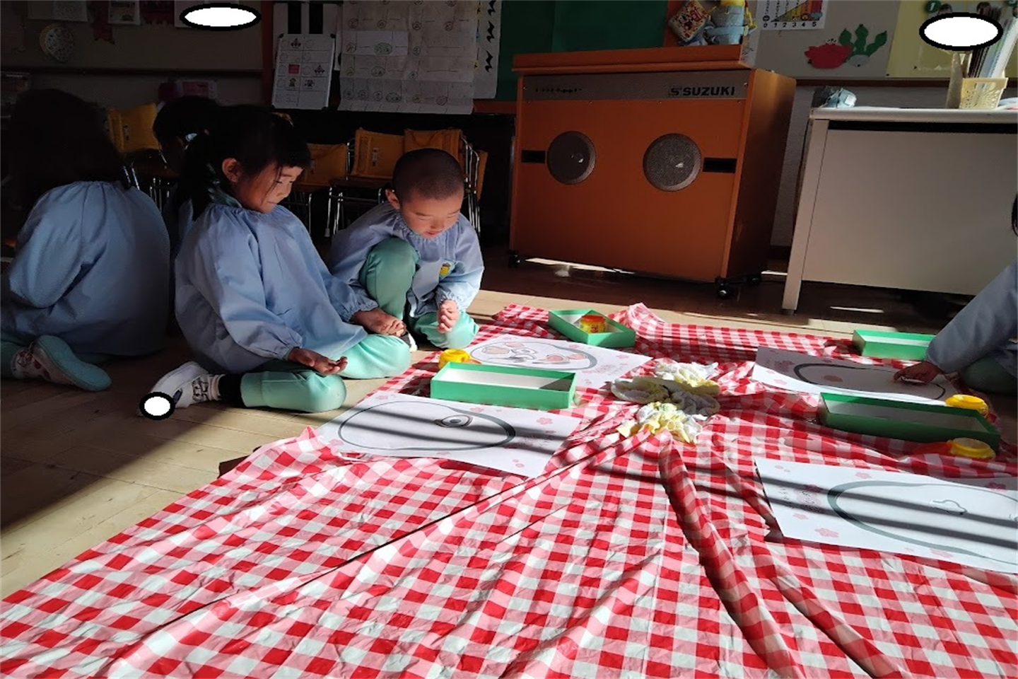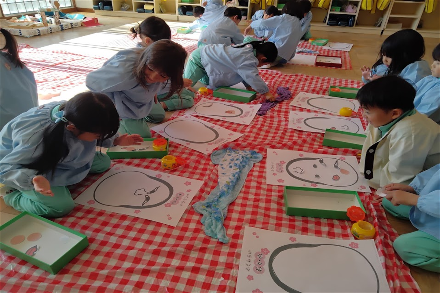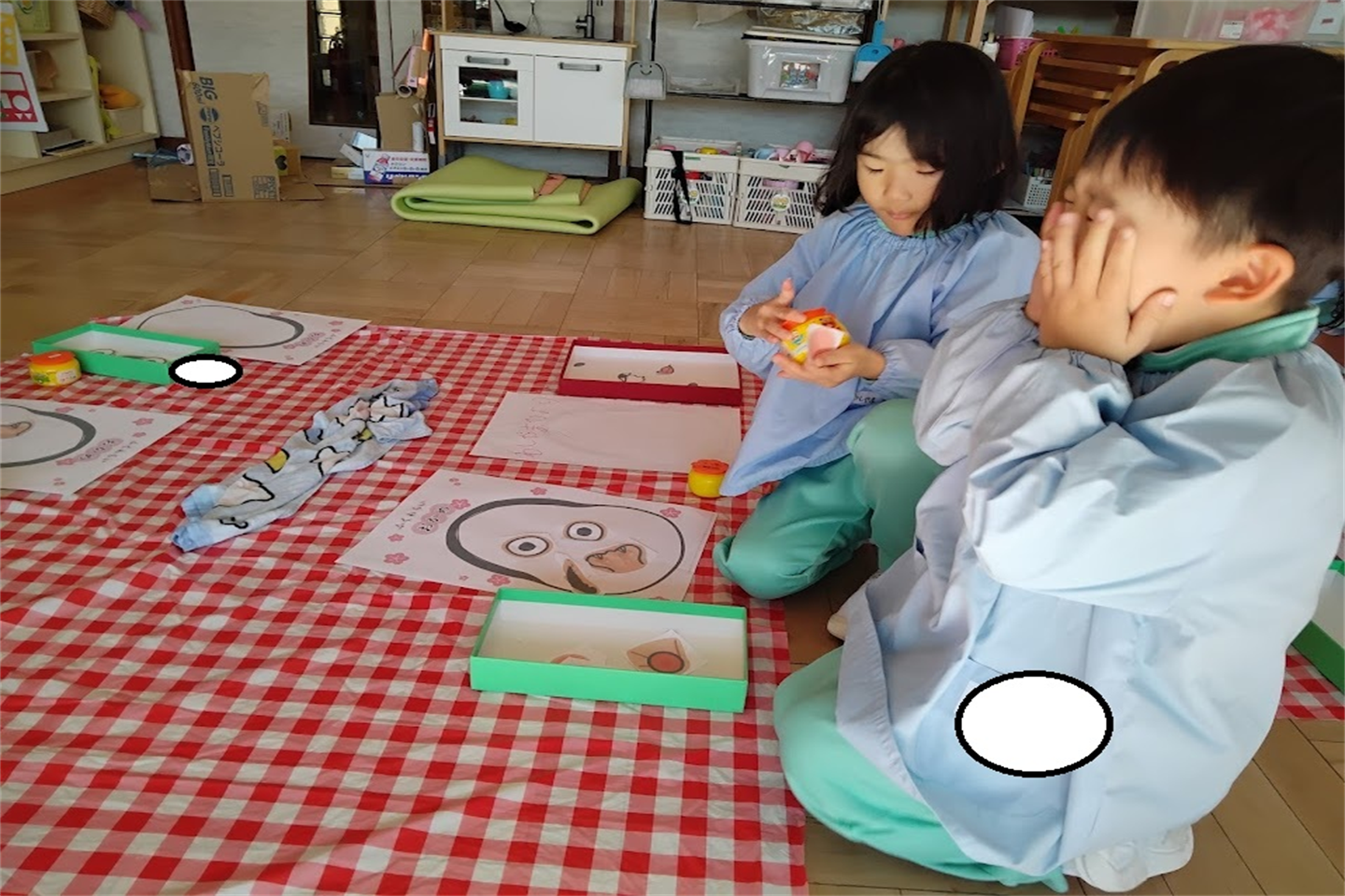 始めは「かわいいお顔がいいな・・変なお顔になるのは嫌!」と伝える子もいましたが、意味をしると「面白い顔楽しみ!目がどこについちゃうのかな~」とワクワクする様子が