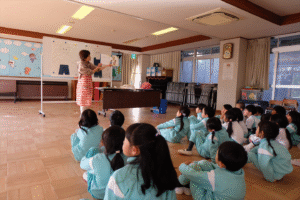 今日は豊田市の助産師さん えり先生が講師となり、命と性のお話し会を行い、年長児・年中児が参加しました。