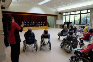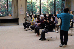 ふじの里のみなさんも「いとまき」の曲の演奏に合わせて一緒に手遊びをしている姿も見られ子ども達も「やってくれてたね