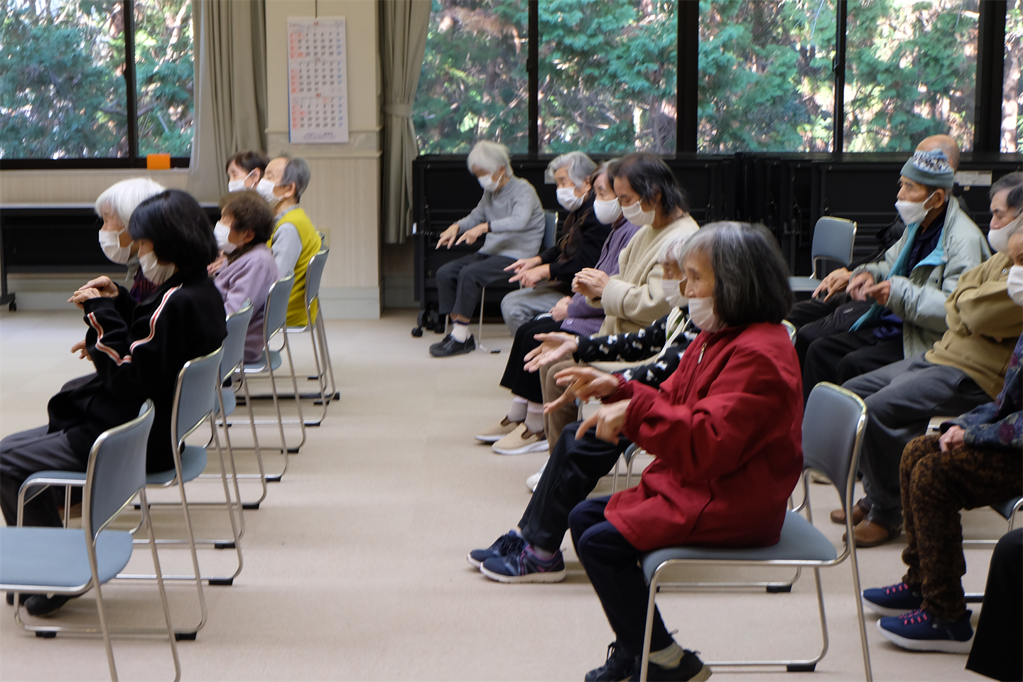 ふじの里のみなさんも「いとまき」の曲の演奏に合わせて一緒に手遊びをしている姿も見られ子ども達も「やってくれてたね