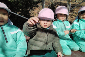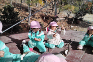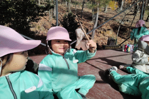 先月に引き続きお山の頂上まで登りました!もう子どもたちは頂上まで登るのは得意に