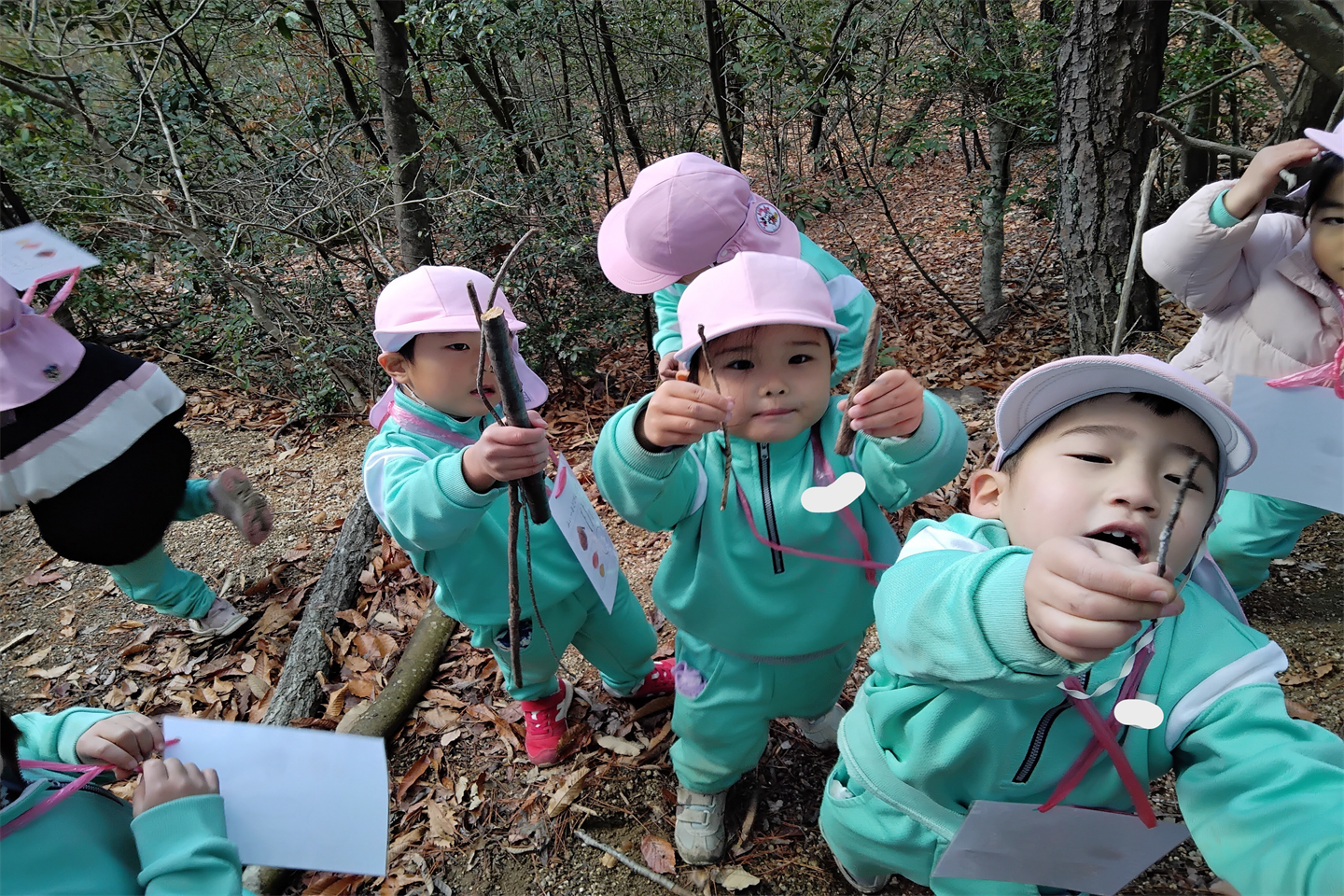 保育者が出したお題を探しながら歩く宝探しのような遊びです。