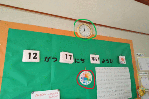 を見比べながら、次の活動の時間を確認👀時間を意識しながら遊ぶ姿が見られました