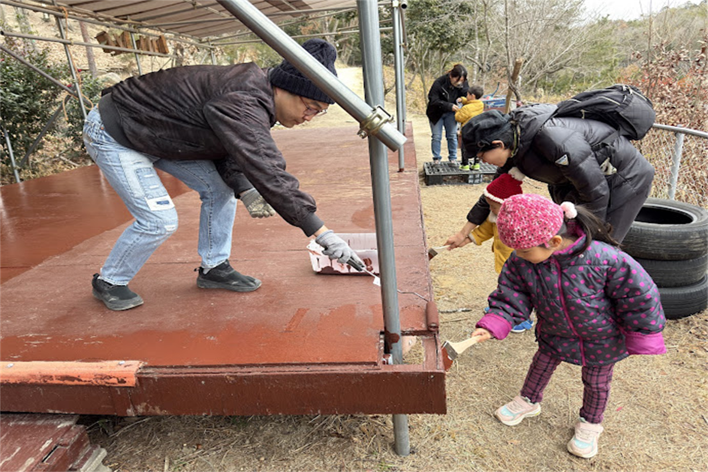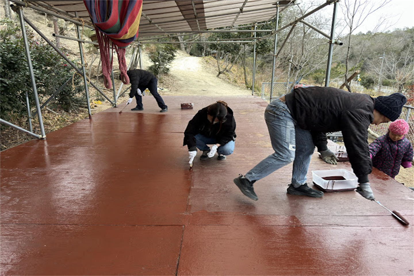 今日のPAPASUNSMILEは、作業日わーい (嬉しい顔)。山のテラスのペンキ塗りを行いました。人出が多いって素敵ですね手 (チョキ)1時間ほどで塗り終わり、ペンキが乾くのを待って、少し今後の環境設定まで出来ました。本日のお手伝いありがとうございました。