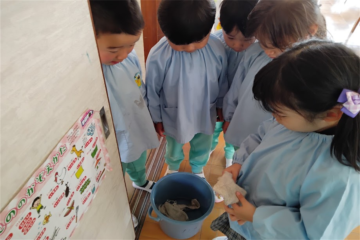 道具の置いてある場所を伝えたり、バケツに入れる水の量や必要な道具の個数を一緒にチェックしましたパンチぴかぴか (新しい)