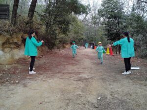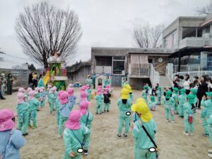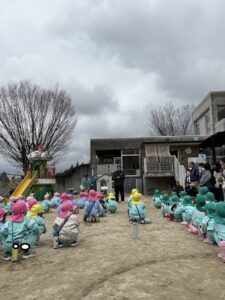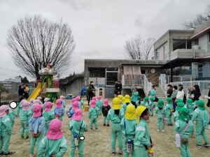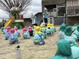 初めに園長先生の挨拶とぴかぴか山での楽しい遊びの説明を聞きました!