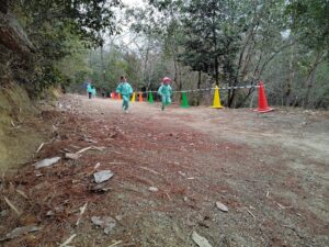 各学年・保護者の方で直線を走って競い合いました