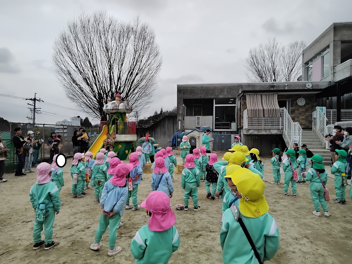 初めに園長先生の挨拶とぴかぴか山での楽しい遊びの説明を聞きました!