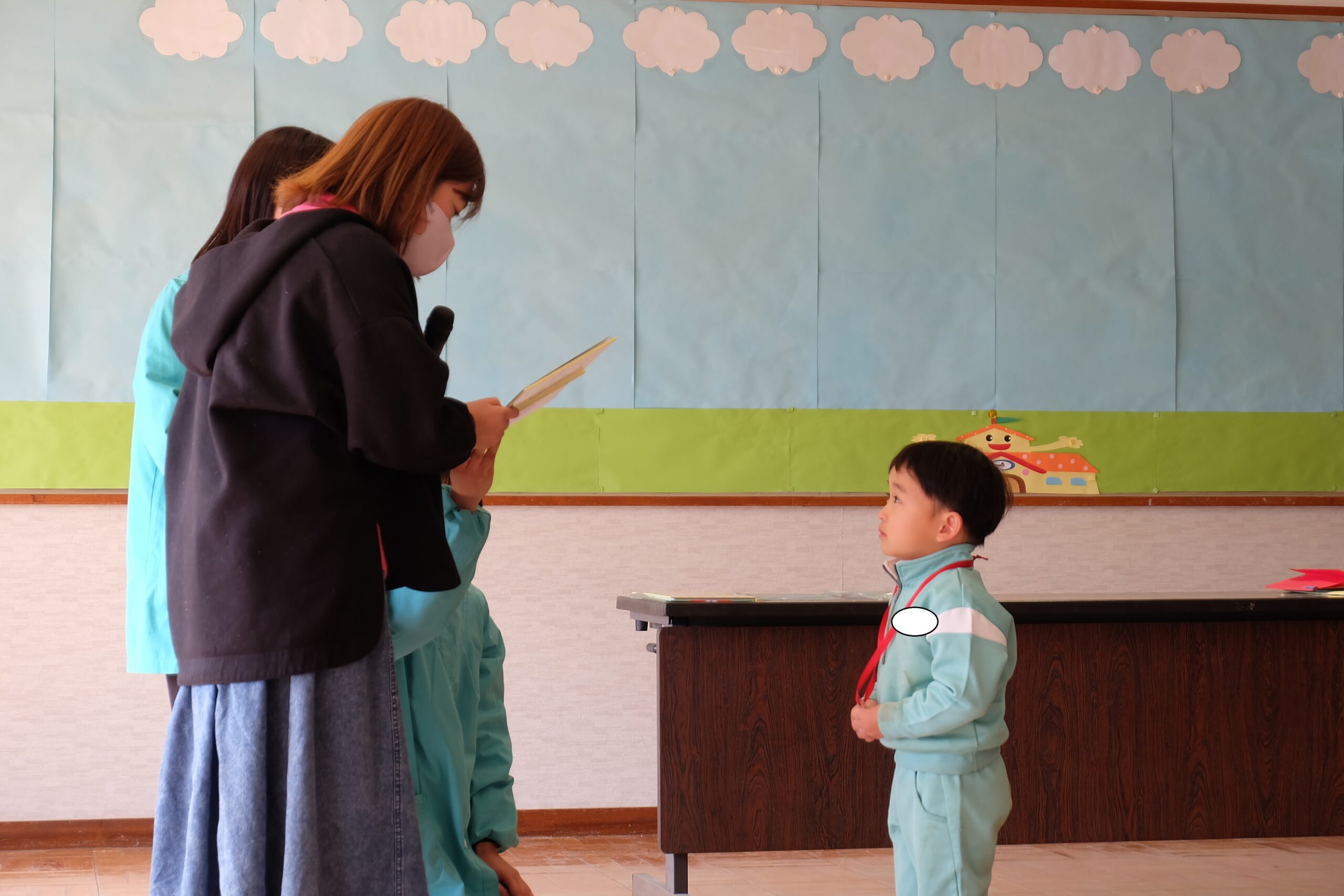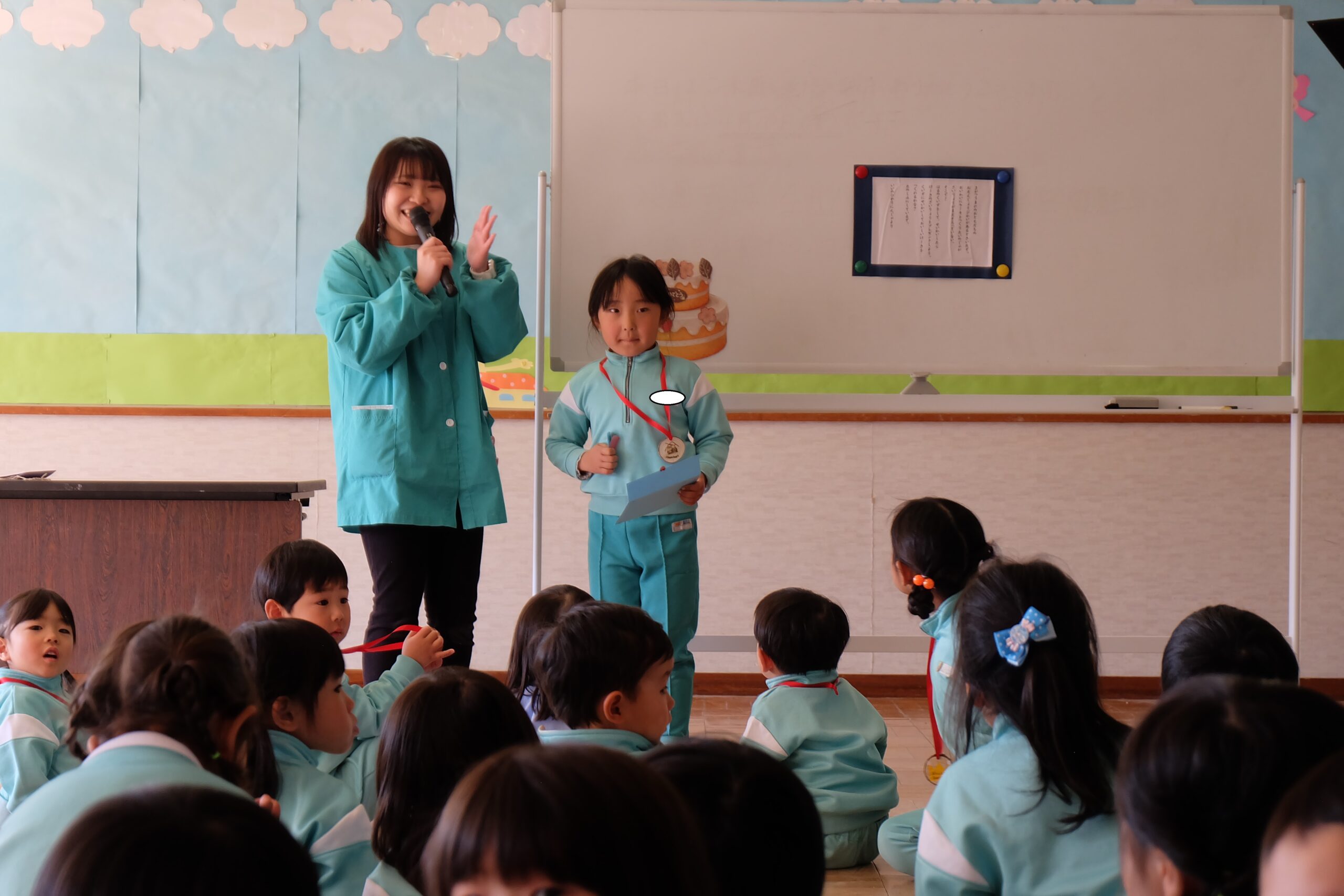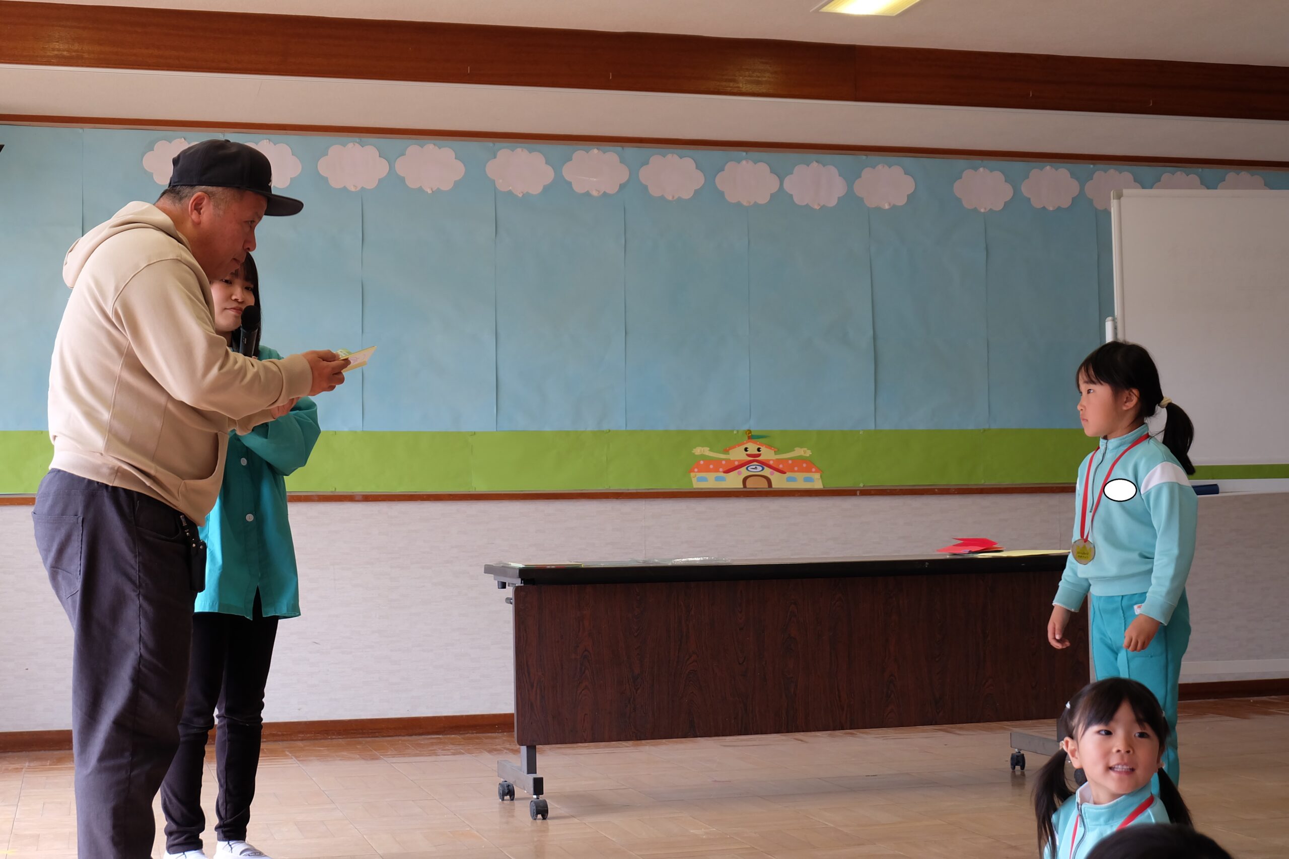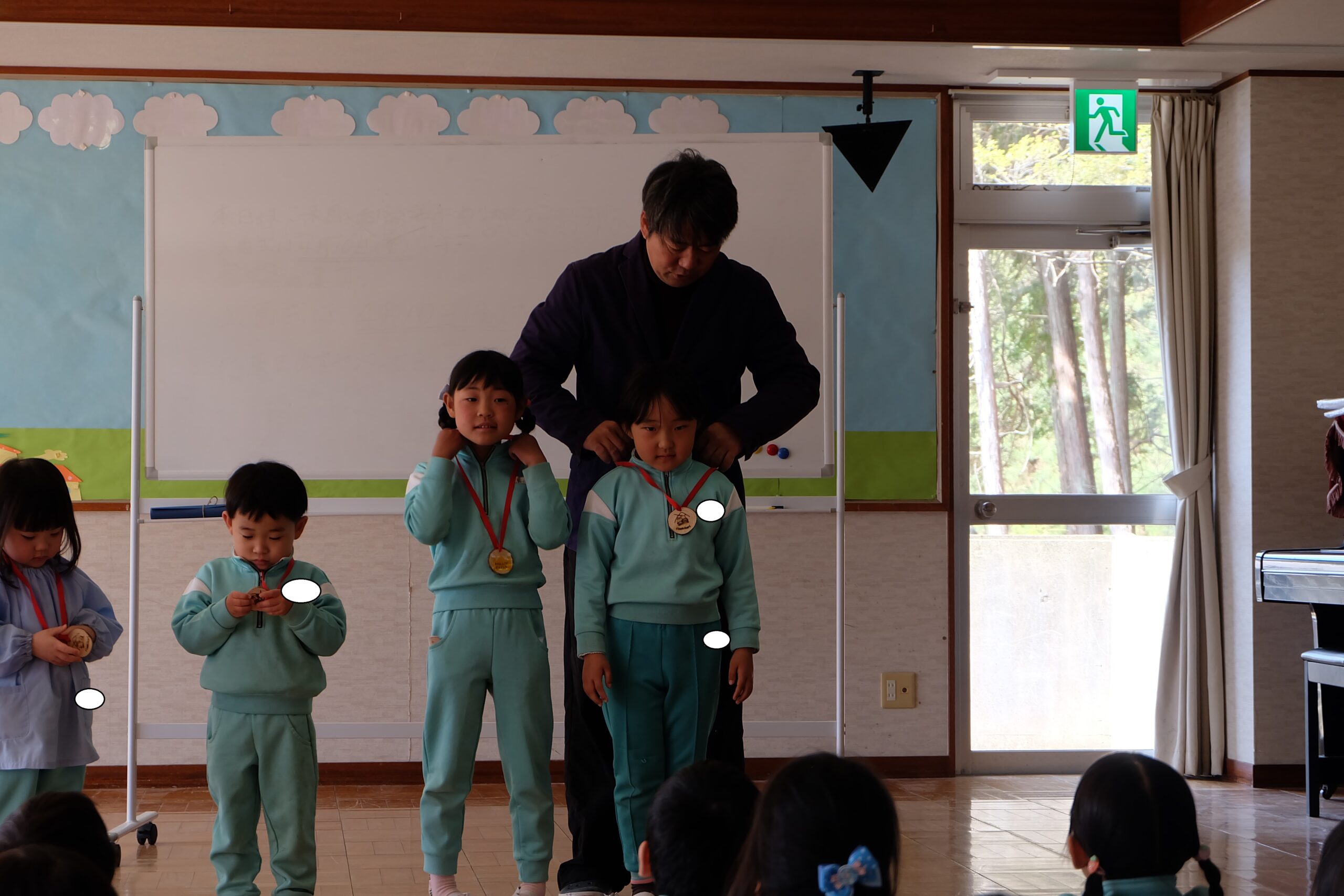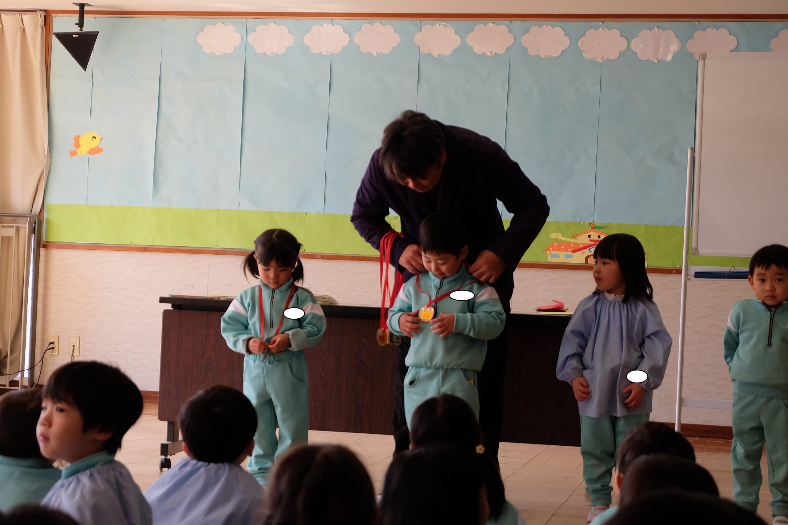 次に園長先生からのメダルのプレゼント🏅