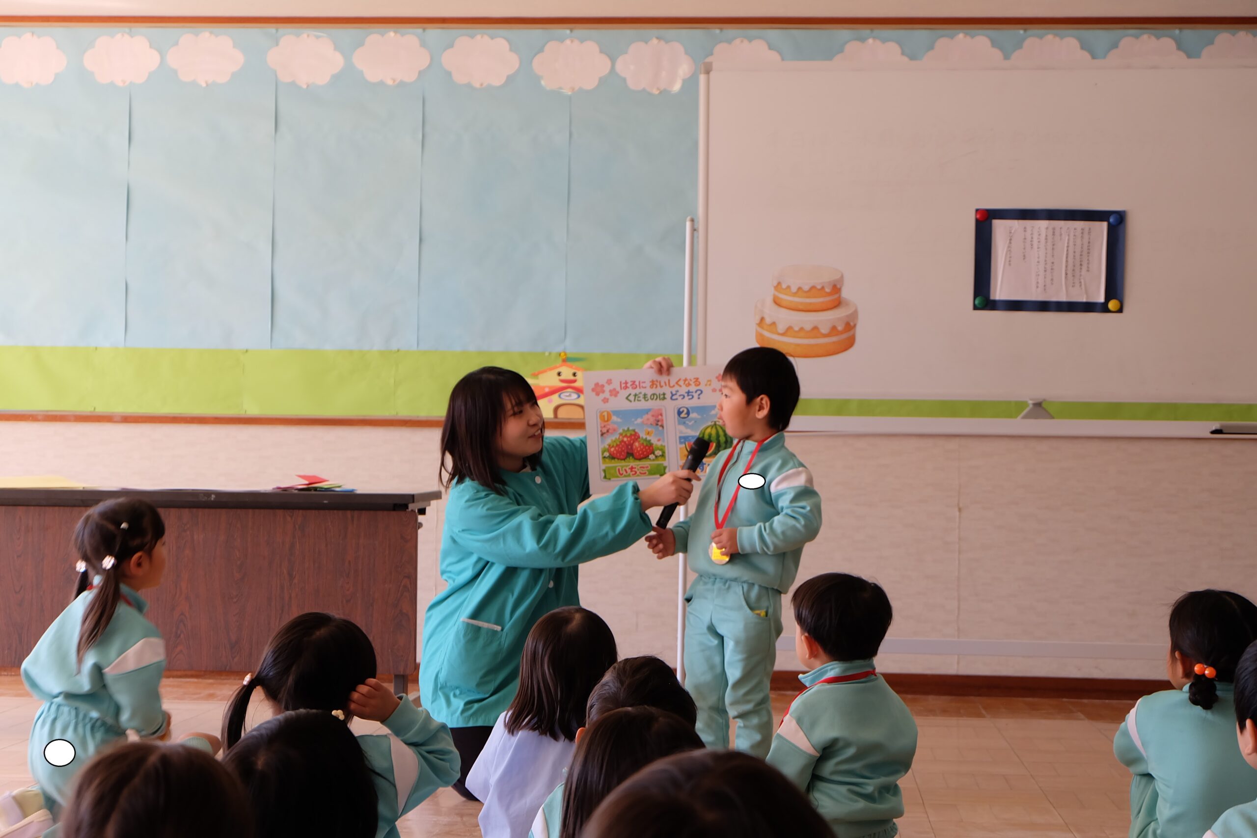 お誕生日のお友だちが1問ずつクイズに答えて、正解をすると