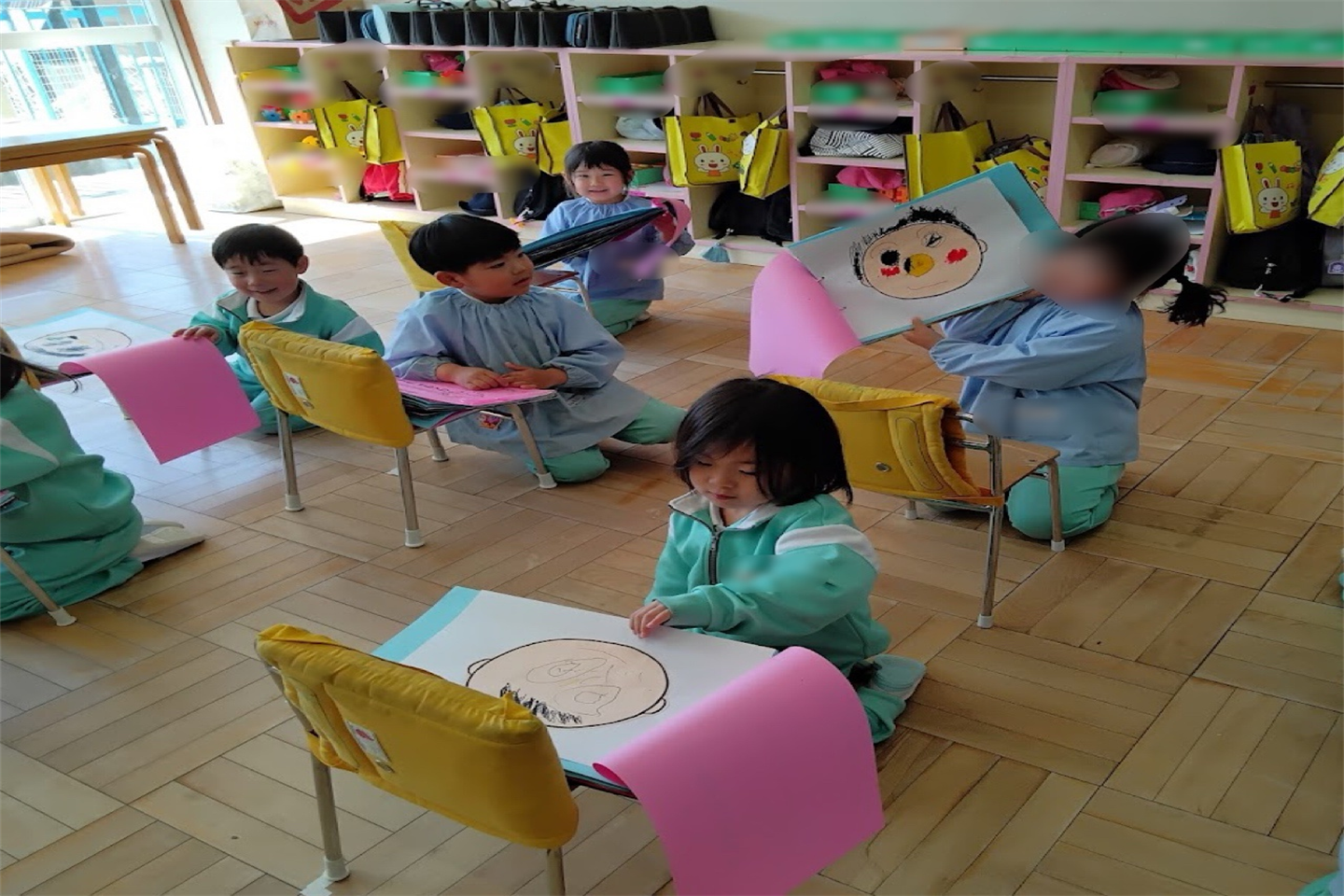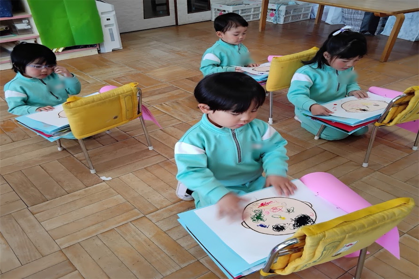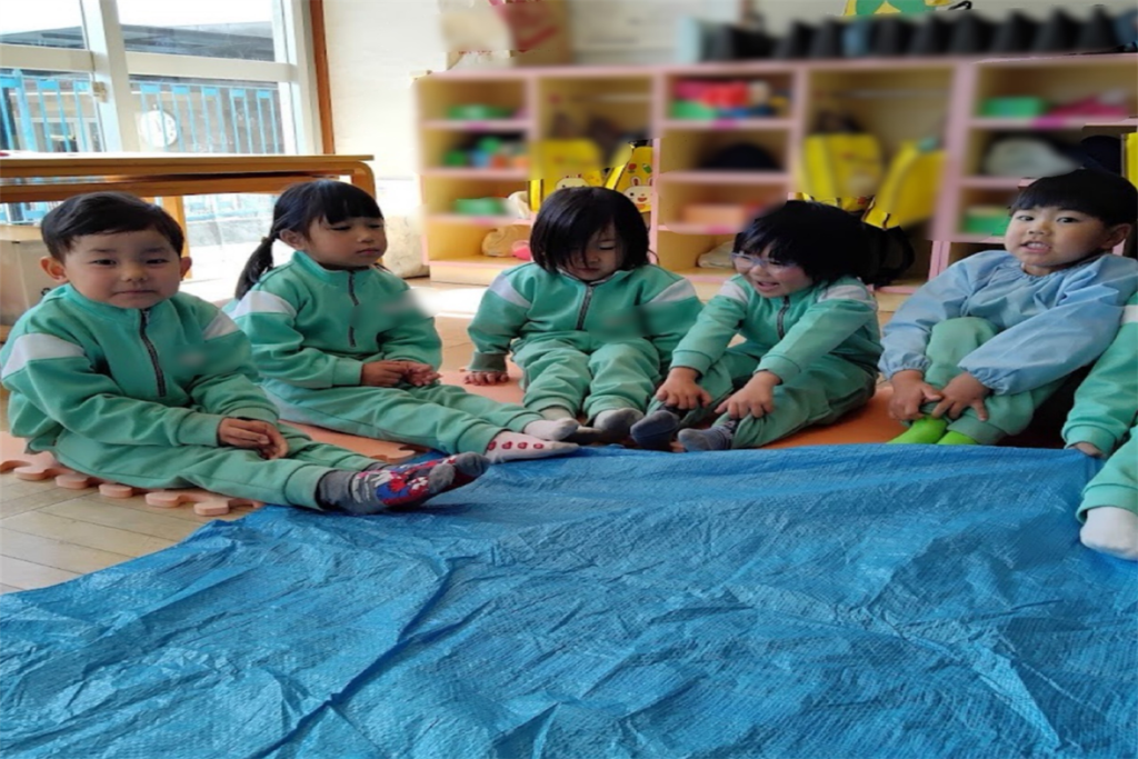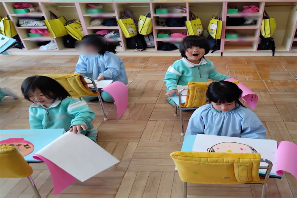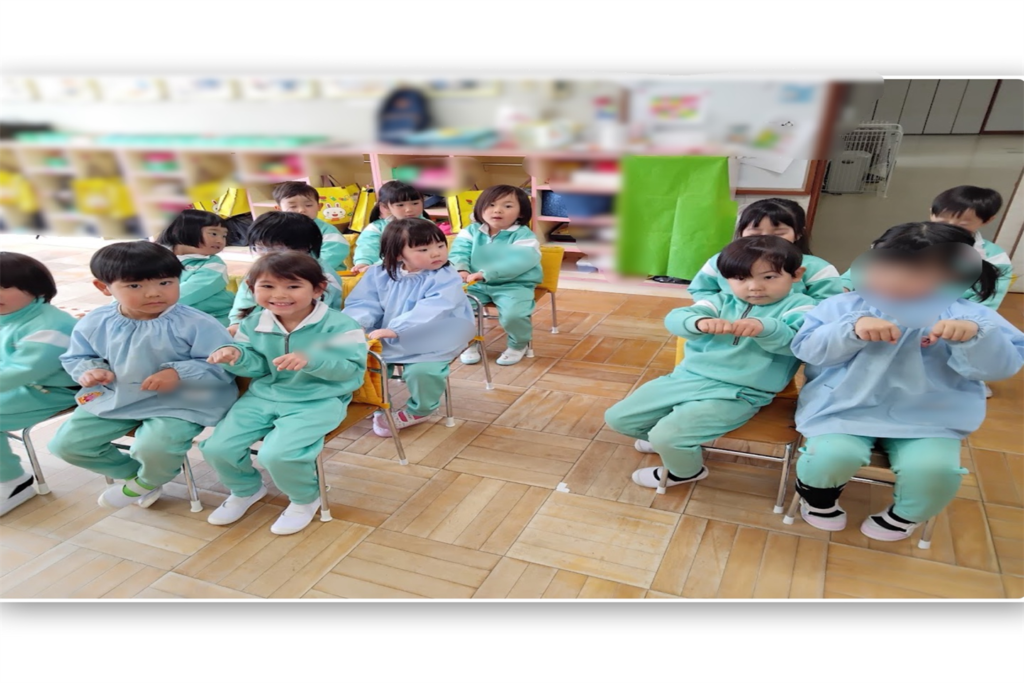3月は進級に向けて、新しい教室を見たり、2階のお部屋やトイレの使い方、避難経路の確認を行いました。安心して新しい環境に移行できるよう、子どもたちと一つひとつ確認しながら進めていきました。また、入園からこれまでの思い出を振り返り、「どんな絵を描いてきたかな?」とこれまでの作品を見ながら話をする姿が見られましたさらに、これから始まるスイミングに向けて、活動時のお約束やバスでの過ごし方についても確認しました。これらの活動を通して、進級への期待を高めながら、自信へとつながる姿が見られました
