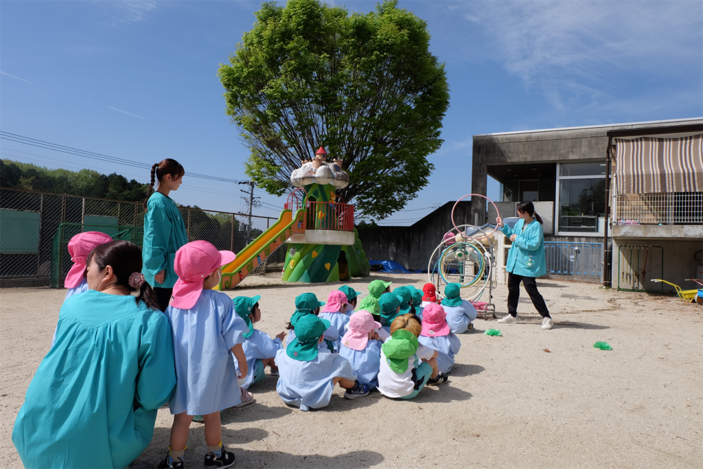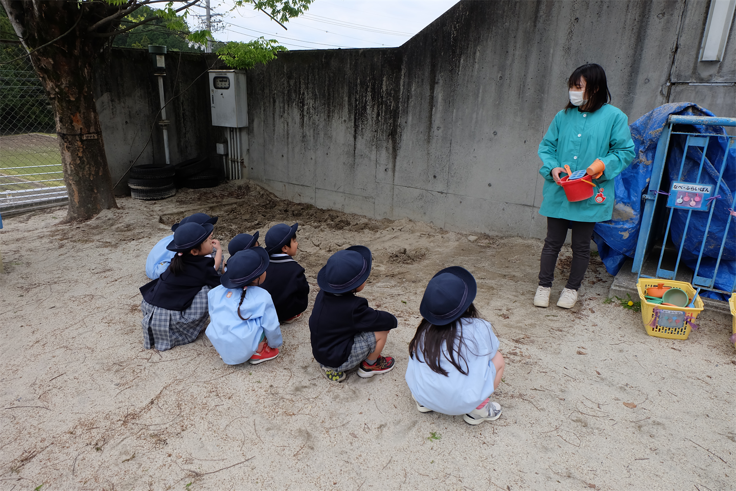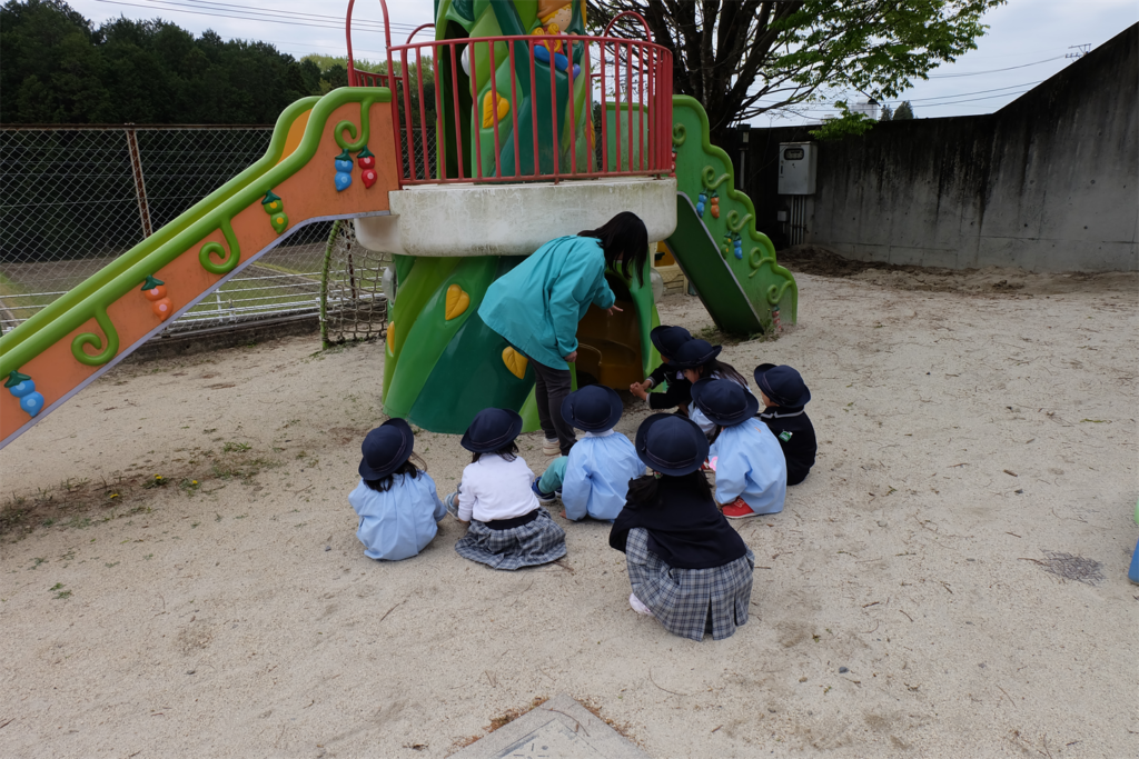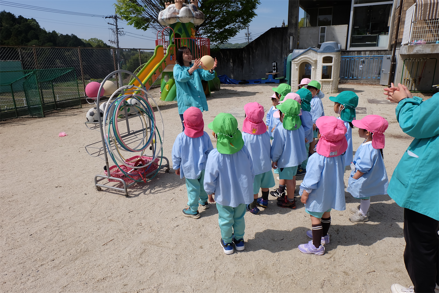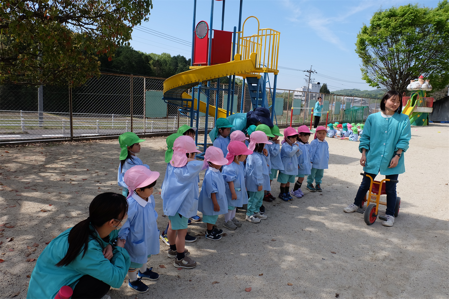 明日からみんなが楽しみにしている園庭での遊びが始まります。楽しくお友達と遊びましょうね